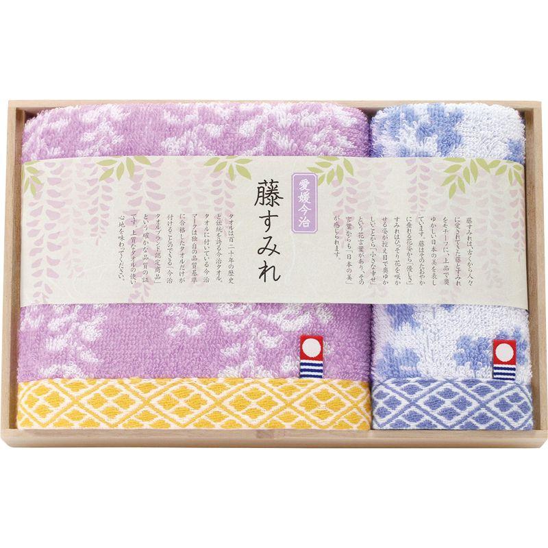 今治 藤すみれ 愛媛今治 フェイスタオル&ハンドタオル(木箱入) 62320