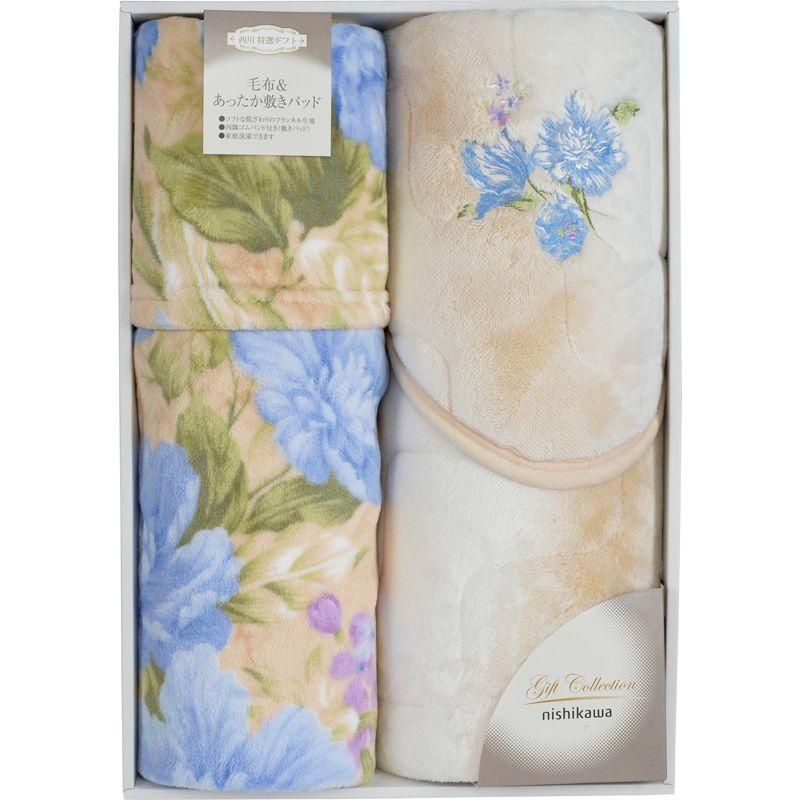 • 西川 ベローナ 毛布&あったか敷きパッドセット ブルー 07EBS-5111BL