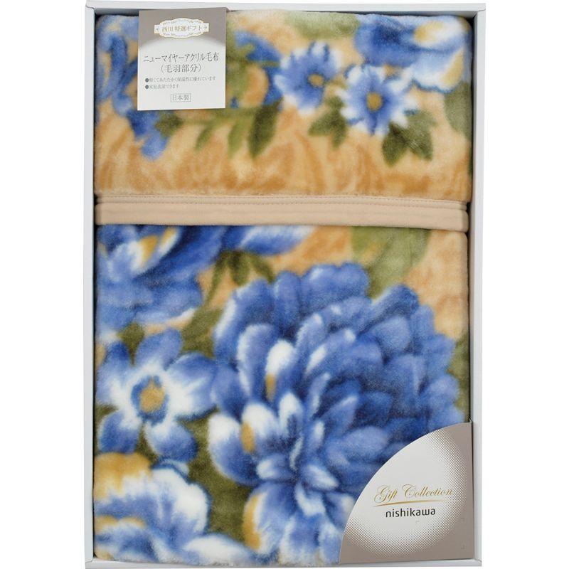 西川 ベローナ 国産ニューマイヤー毛布 ブルー 07K5101BL