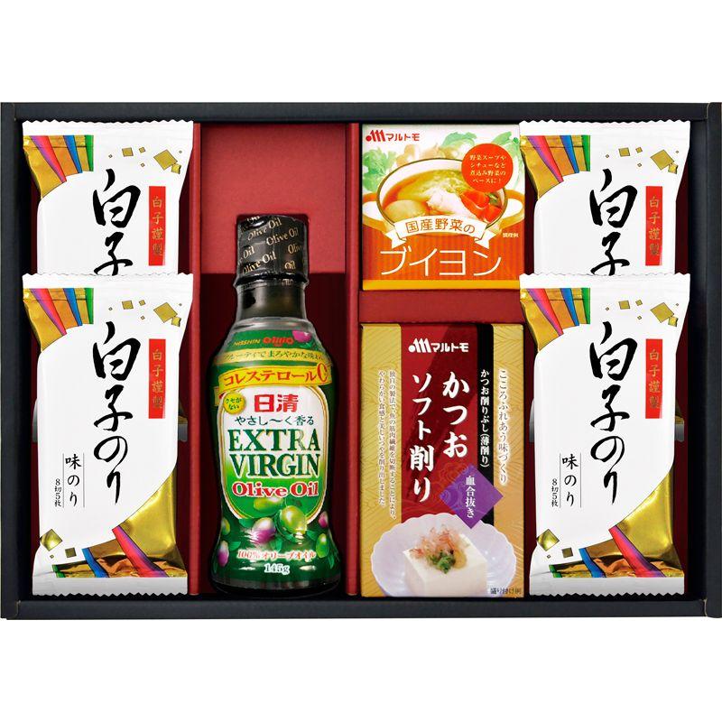 • 商品内容:白子のり味のり(8切5枚)×4、日清エキストラバージンオリーブオイル(145g)・マルトモ国産野菜のブイヨン(4g×4)・マルトモかつおソフト削り(1.5g×3)×各1