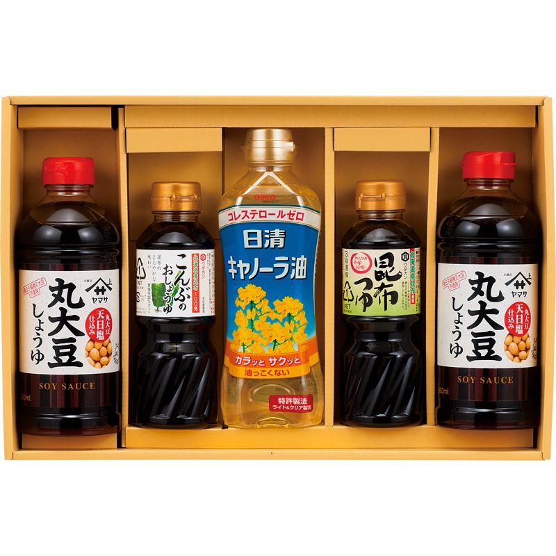 • 商品内容:ヤマサ丸大豆しょうゆ(500ml)×2、日清キャノーラ油(380g)・ワダカン(昆布つゆ・こんぶのおしょうゆ)(各300ml)×各1