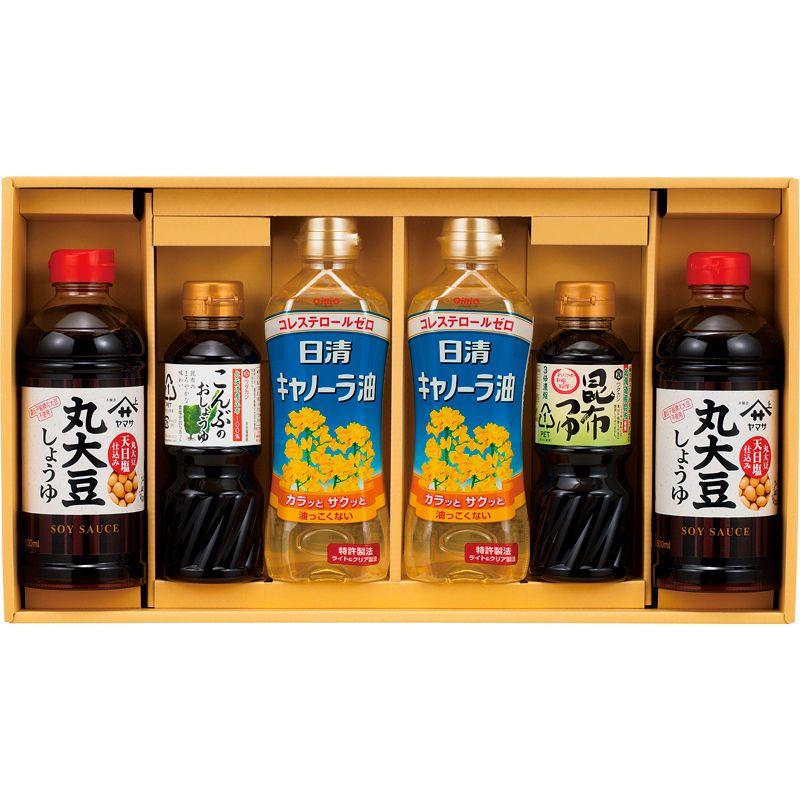 • 商品内容:ヤマサ丸大豆しょうゆ(500ml)・日清キャノーラ油(380g)×各2、ワダカン(昆布つゆ・こんぶのおしょうゆ)(各300ml)×各1