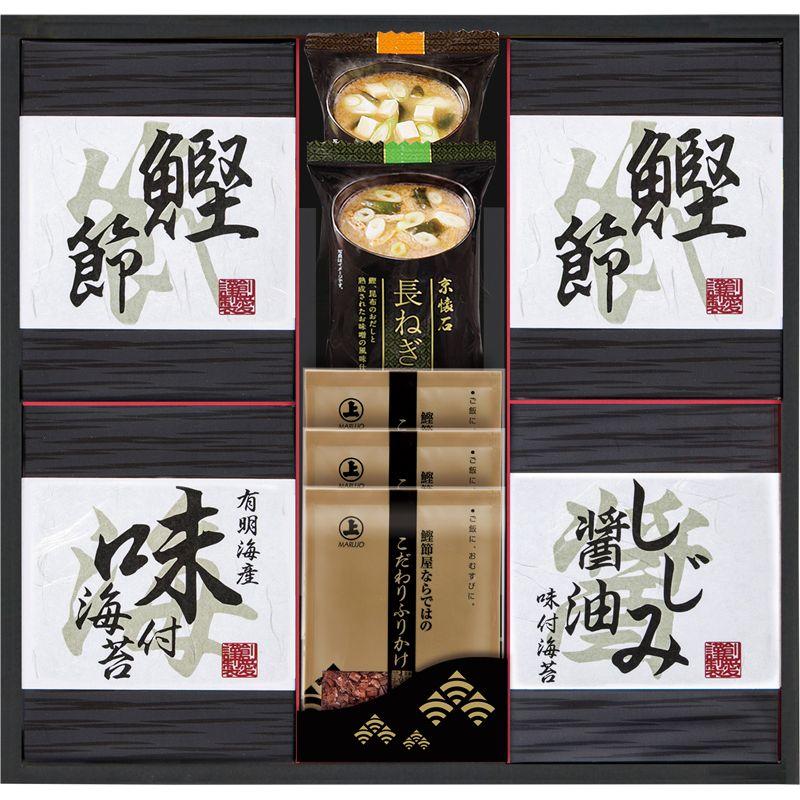 • 商品内容:こだわりふりかけ(6g)×3、鰹節削り(2g×4袋)×2、有明海産味付海苔・しじみ醤油味付海苔(各8切8枚×2袋)・マルコメ京懐石長ねぎのおみそ汁(15.7g)・マルコメ京懐石豆腐のおみそ汁(11g)×各1