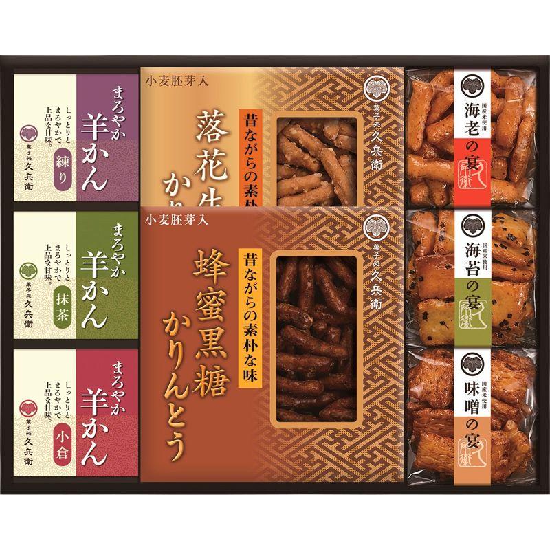• 商品内容:羊かん(抹茶・練り・小倉)(各60g)・蜂蜜黒糖かりんとう・落花生かりんとう(各45g)・あられ(海老・海苔・味噌)(各30g)×各1