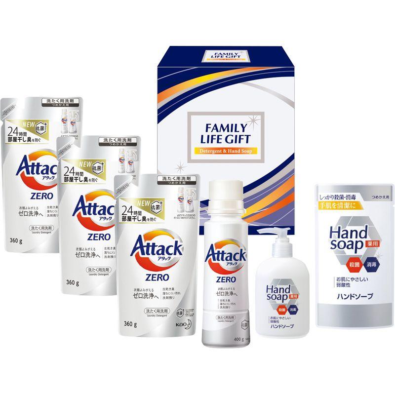 • 商品内容:アタックZERO詰替用(360g)×3、アタックZERO(400g)・薬用ハンドソープ(250ml)・薬用ハンドソープ詰替用(200ml)×各1