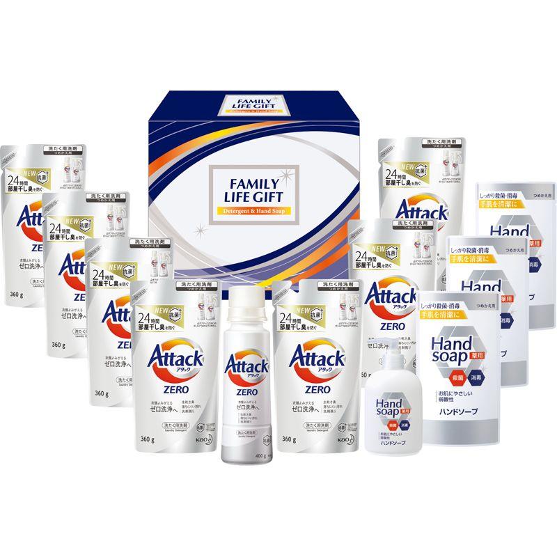 • 商品内容:アタックZERO詰替用(360g)×7、薬用ハンドソープ詰替用(200ml)×3、アタックZERO(400g)・薬用ハンドソープ(250ml)×各1