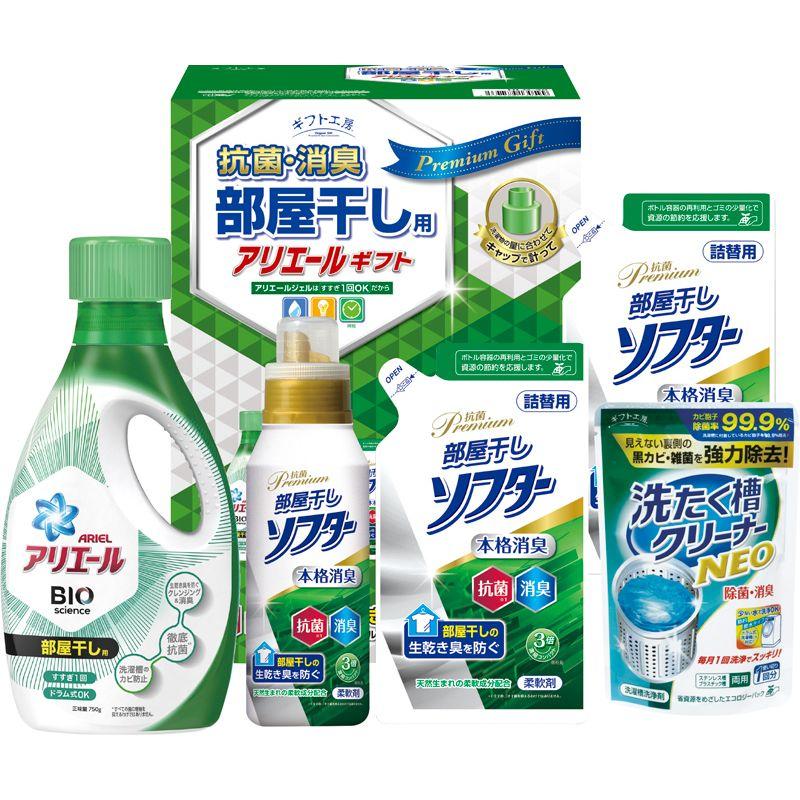 • 商品内容:抗菌部屋干しソフター詰替用(350g)×2、P&Gアリエールジェル部屋干し用(750g)・抗菌部屋干しソフター(400g)・洗たく槽クリーナーNEO(100g)×各1
