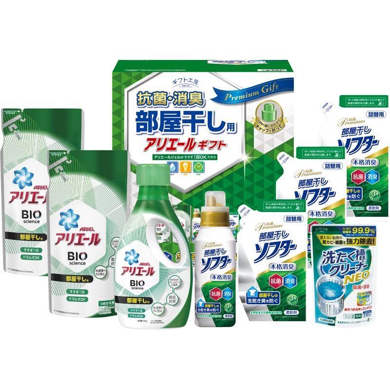 • 商品内容:抗菌部屋干しソフター詰替用(350g)×3、P&Gアリエールジェル部屋干し用詰替用(690g)×2、P&Gアリエールジェル部屋干し用(750g)・抗菌部屋干しソフター(400g)・洗たく槽クリーナーNEO(100g)×各1