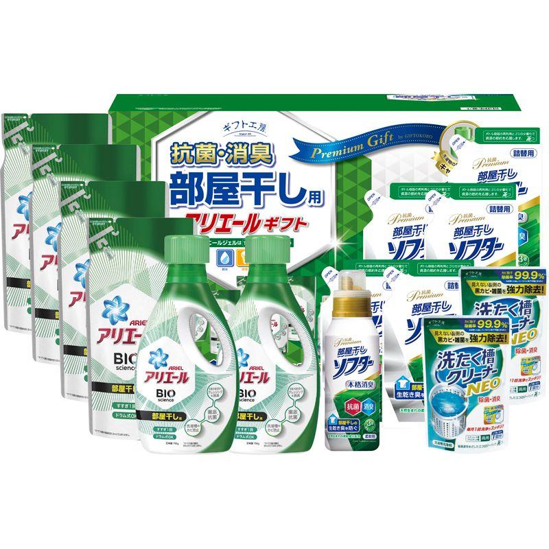 • 商品内容:抗菌部屋干しソフター詰替用(350g)×5、P&Gアリエールジェル部屋干し用詰替用(690g)×4、P&Gアリエールジェル部屋干し用(750g)・洗たく槽クリーナーNEO(100g)×各2、抗菌部屋干しソフター(400g)×1