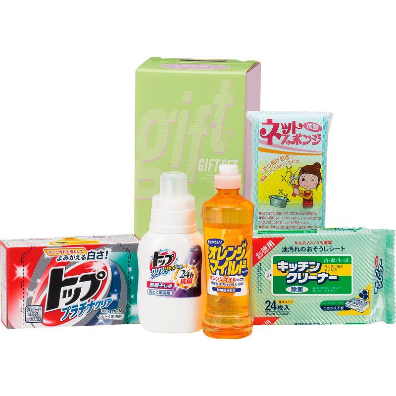 • 商品内容:ライオントップ(プラチナクリア・クリアリキッド抗菌)(各300g)・オレンジマイルドコンパクト(270ml)・キッチンクリーナー(24枚)・ネットスポンジ(中国)×各1