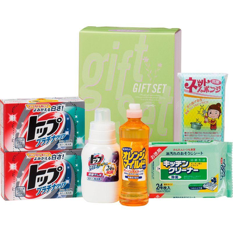 • 商品内容:ライオントッププラチナクリア(300g)×2、ライオントップクリアリキッド抗菌(300g)・オレンジマイルドコンパクト(270ml)・キッチンクリーナー(24枚)・ネットスポンジ(中国)×各1