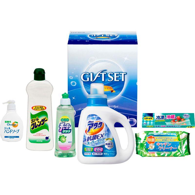 • 商品内容:花王アタック抗菌EXスーパークリアジェル(900g)・ライオンリード冷凍も冷蔵も新鮮保存バッグ(タイ)(S3枚)・クリームクレンザー(400g)・除菌キッチンクリーナー(24枚)・ライオンチャーミーグリーン(260ml)・オレンジジェルハンドソープ(200ml)×各1