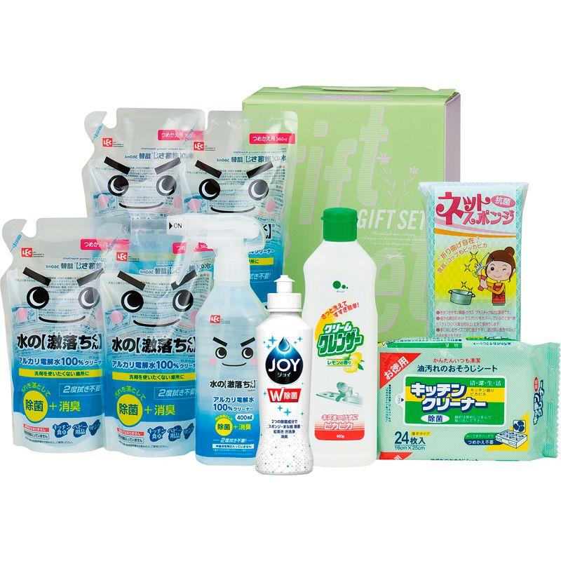 • 商品内容:レック水の激落ちくん詰替用(360ml)×4、レック水の激落ちくん(400ml)・クリームクレンザー(400g)・P&G除菌ジョイコンパクト(175ml)・キッチンクリーナー(24枚)・ネットスポンジ(中国)×各1