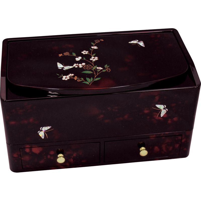 べっこう塗で仕上げています。ふたの裏に鏡が付いています。