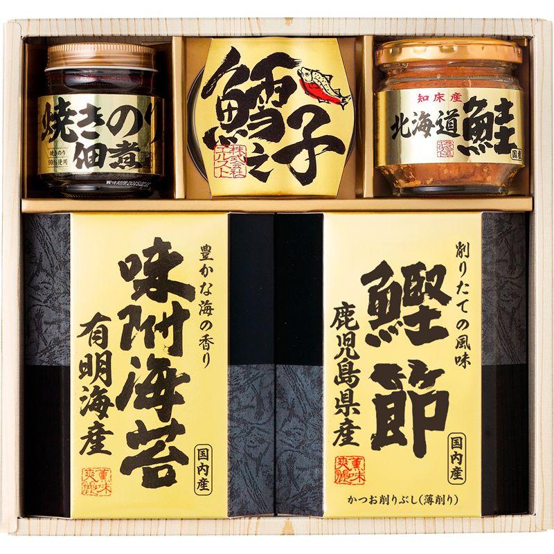 シリーズ累計販売200万セット突破!北海道産の鮭フレーク、小豆島で製造された焼海苔の佃煮、有明海産の味付け海苔など選りすぐりの逸品を詰合せた和風ギフトです。