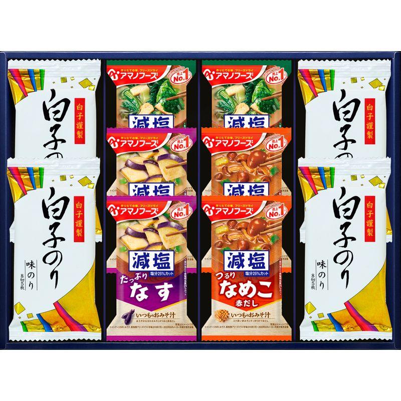 • 商品内容:白子味のり(8切5枚)×4、アマノフーズ減塩いつものおみそ汁(なす・なめこ・ほうれん草)×各2