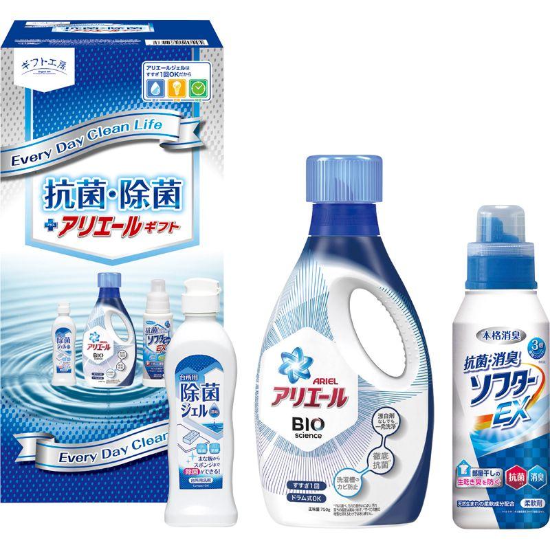 • 商品内容:P&Gアリエールジェル(750g)・台所用除菌ジェル(250ml)・抗菌・消臭ソフターEX(400g)×各1