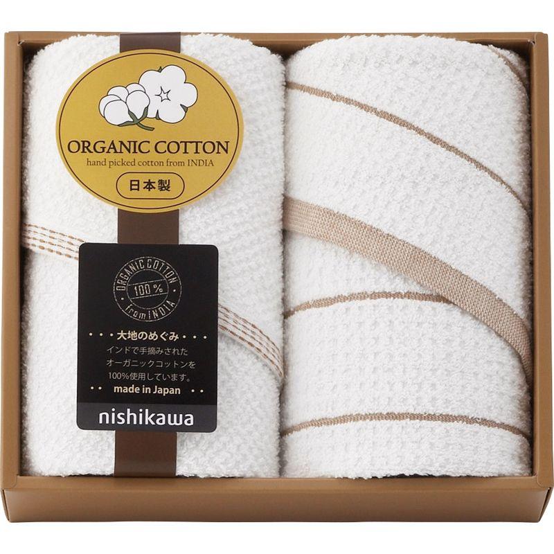 西川 オーガニックコットンフェイスタオル2P 2223-20301