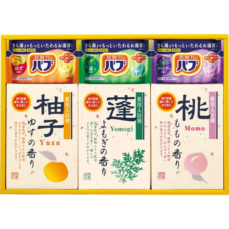 • 商品内容:バブ(ゆず・森・ラベンダー)・薬用入浴剤(ゆず・よもぎ・もも)(各25g×2袋)×各1