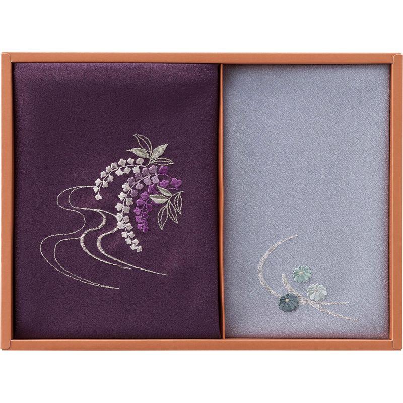 • 洛北 刺繍入り二巾風呂敷&刺繍入り金封包み 紫 H018B
