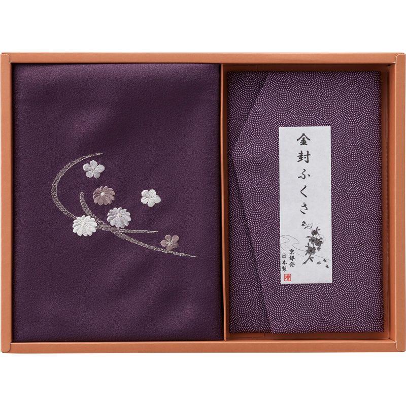 洛北 刺繍入り二巾風呂敷&金封ふくさ 紫 H023B