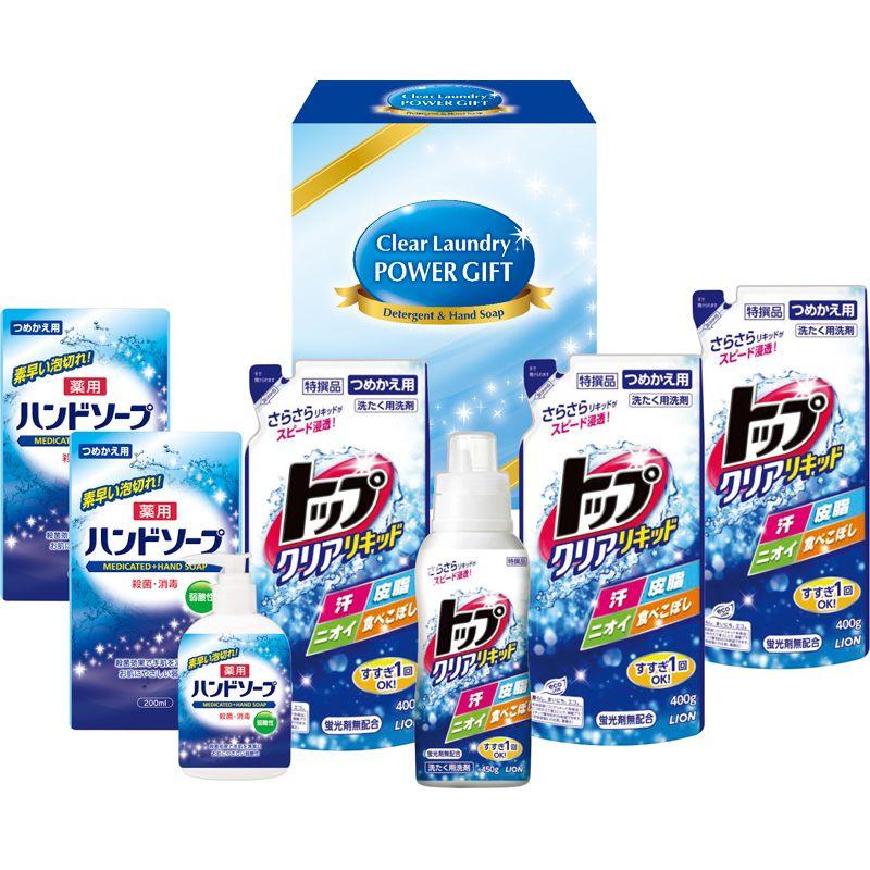 • 商品内容:トップクリアリキッド詰替用(400g)×3、薬用ハンドソープ詰替用(200ml)×2、トップクリアリキッド(450g)・薬用ハンドソープ(250ml)×各1