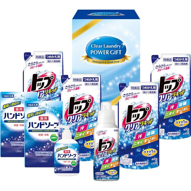 • 商品内容:トップクリアリキッド詰替用(400g)×4、薬用ハンドソープ詰替用(200ml)×2、トップクリアリキッド(450g)・薬用ハンドソープ(250ml)×各1