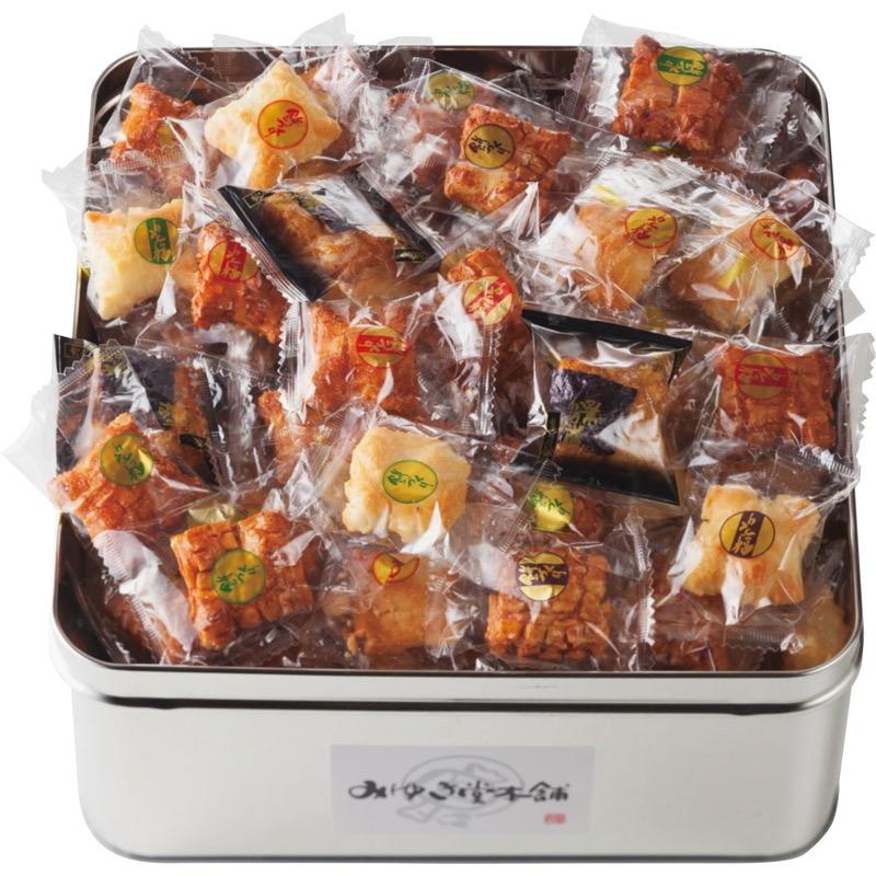 あっさりとした塩味の「サラダおかき」。まろやかな醤油味の「醤油おかき」。小粒のザラメをまぶした「ザラメおかき」に黒海苔を巻いた「黒海苔巻」を加えた、ぷっくりと焼きあがった形がかわいらしい4つの味わいを是非ご賞味ください。
