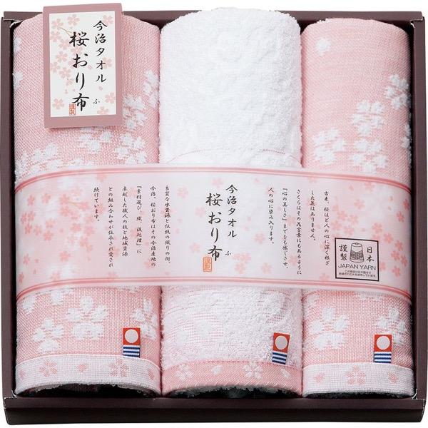 • 桜おり布フェイスタオル2P&ウォッシュタオル ピンク IS7625[今治製タオル 桜おり布]