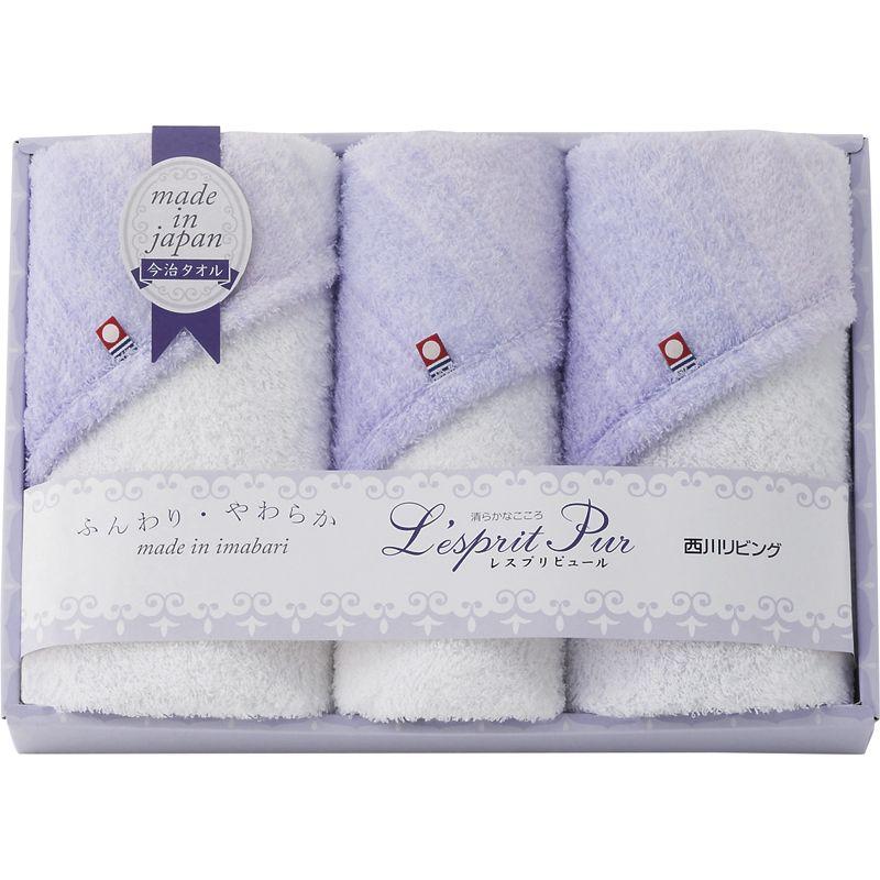 西川リビングレスプリピュール今治フェイスタオル2P&ウォッシュタオル2241-05429