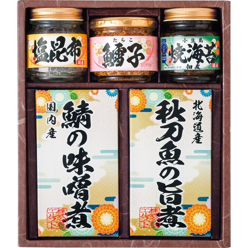 • セット内容:塩昆布(18g)・焼き海苔佃煮(85g)・さんまの旨煮(95g)・さばの味噌煮(80g)・たらこ(フレーク)(40g)×各1