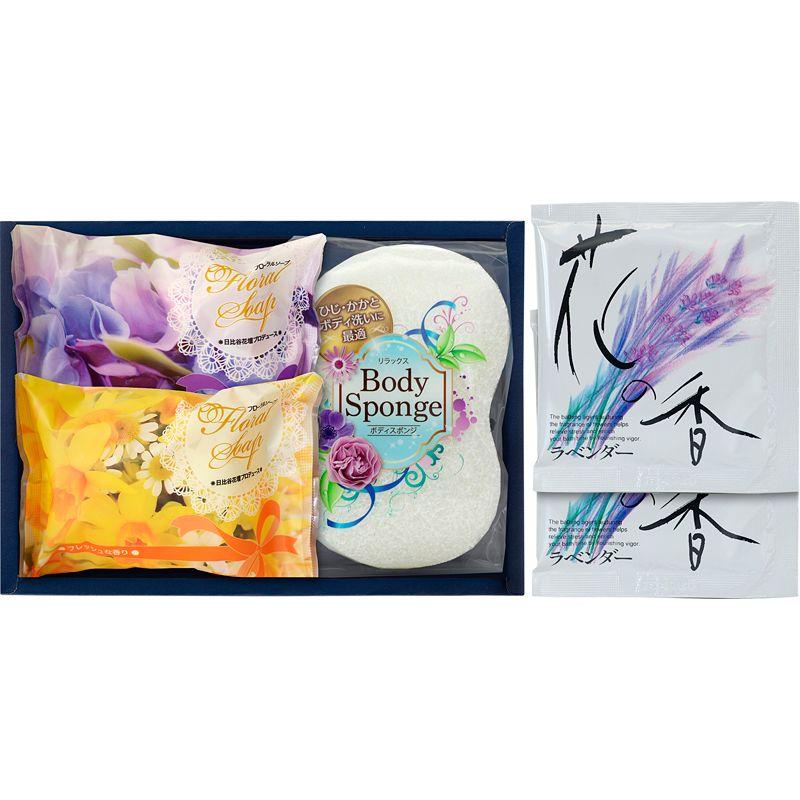 • セット内容:フローラルソープ(80g)・花の香入浴剤(25g)×各2、ボディスポンジ×1