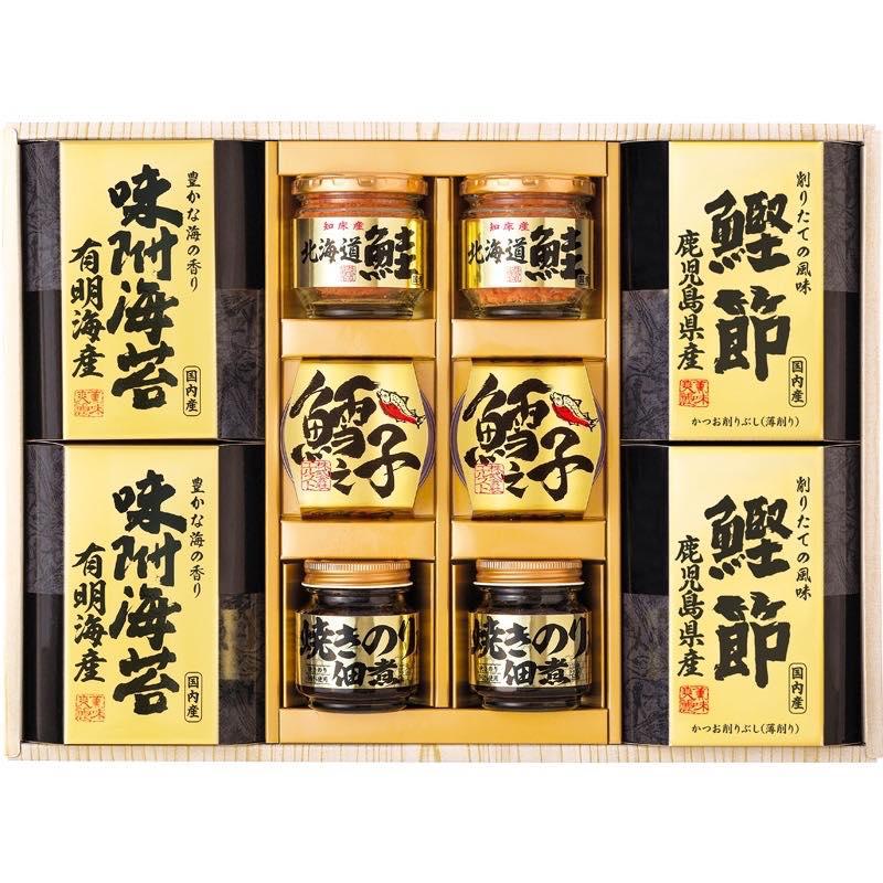 シリーズ累計販売180万セット突破!北海道産の鮭フレーク、小豆島で製造された焼海苔の佃煮、有明海産の味付け海苔など選りすぐりの逸品を詰合せた和風ギフトです。