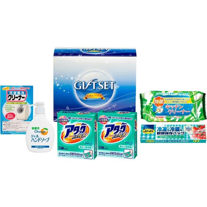 • セット内容:花王ワンパックアタック(24g×3包)×2、オレンジジェルハンドソープ(200ml)・ライオンリード冷凍も冷蔵も新鮮保存バッグ(タイ)(S3枚)・洗濯機用クリーナーM・除菌キッチンクリーナー(24枚)×各1
