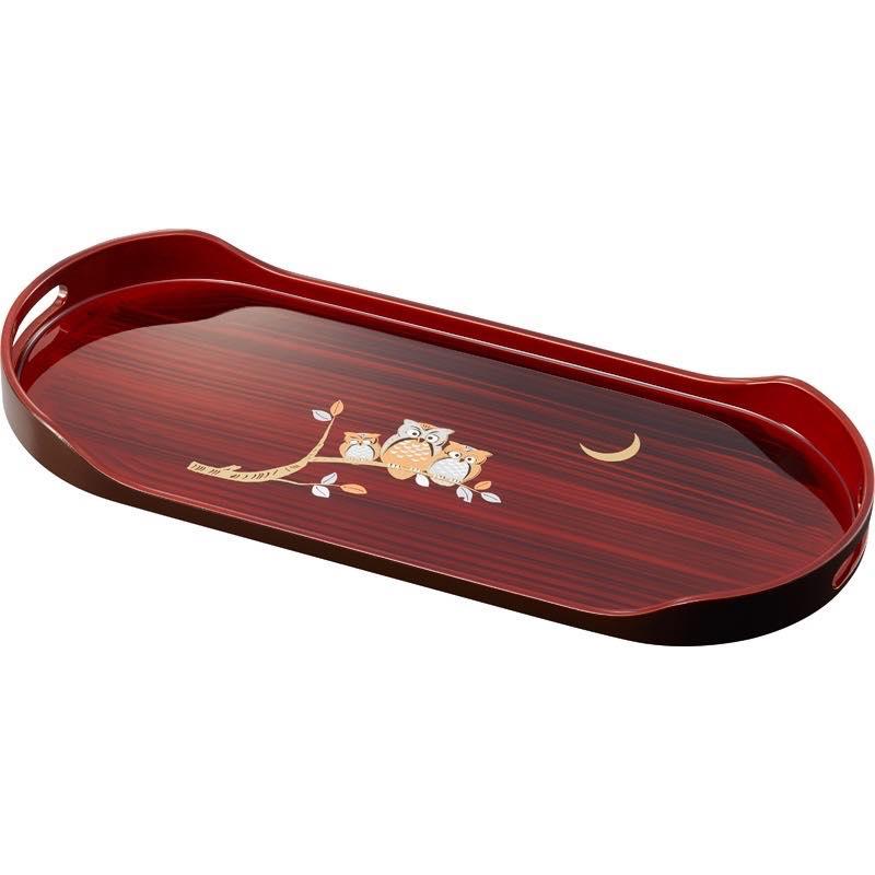 杢目春慶塗 山里ふくろう 16.0コーヒートレー 30001