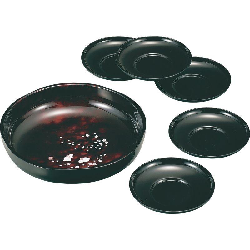 伝統的なべっ甲塗りに、うさぎと桜をあしらった艶やかなシリーズです。「山中塗り」の逸品です。