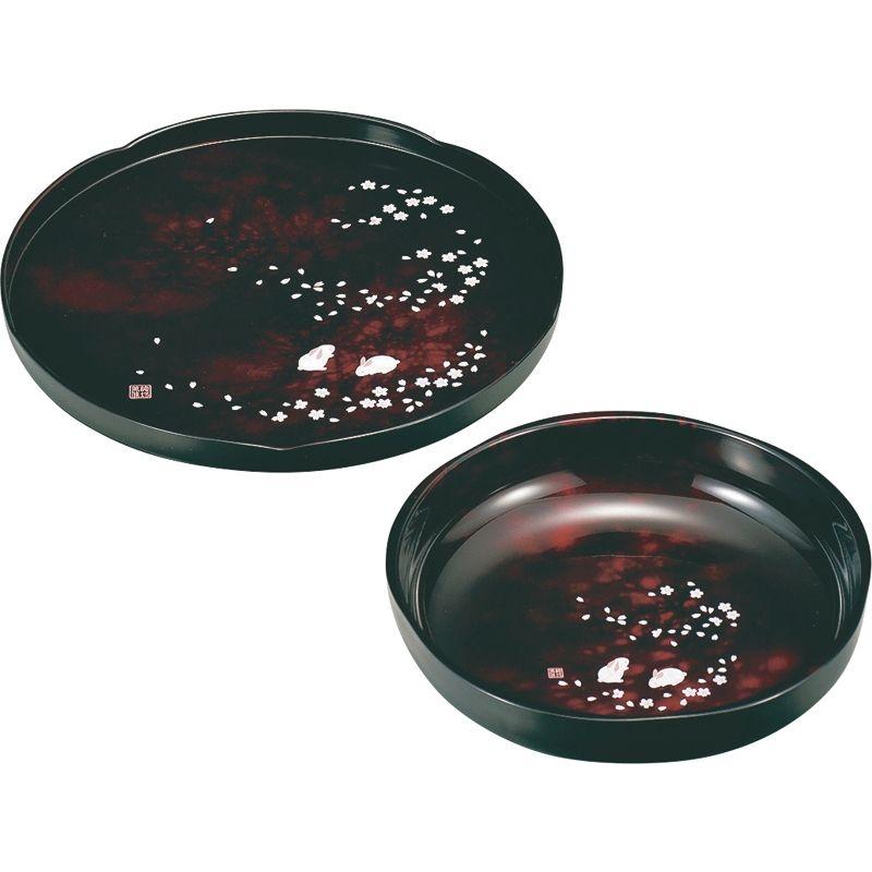 伝統的なべっ甲塗りに、うさぎと桜をあしらった艶やかなシリーズです。「山中塗り」の逸品です。