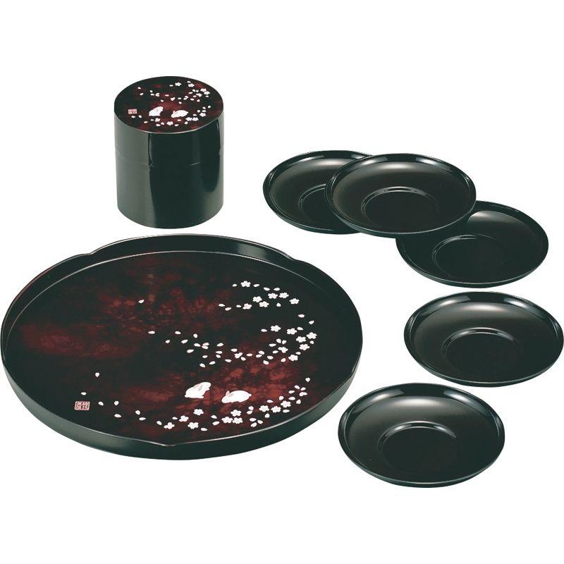 • 商品内容:茶托(φ11.9×2cm)×5、丸盆(φ26.8×2.2cm)・茶筒(φ8.8×9.2cm)×各1