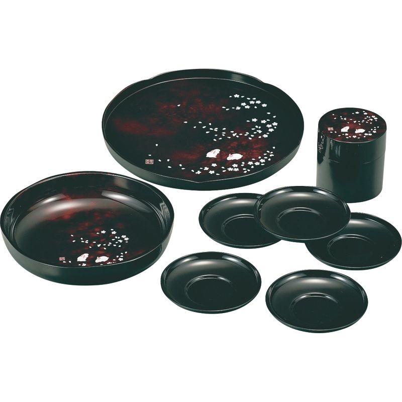 • 商品内容:茶托(φ11.9×2cm)×5、丸盆(φ26.8×2.2cm)・菓子鉢(φ21×5.1cm)・茶筒(φ8.8×9.2cm)×各1