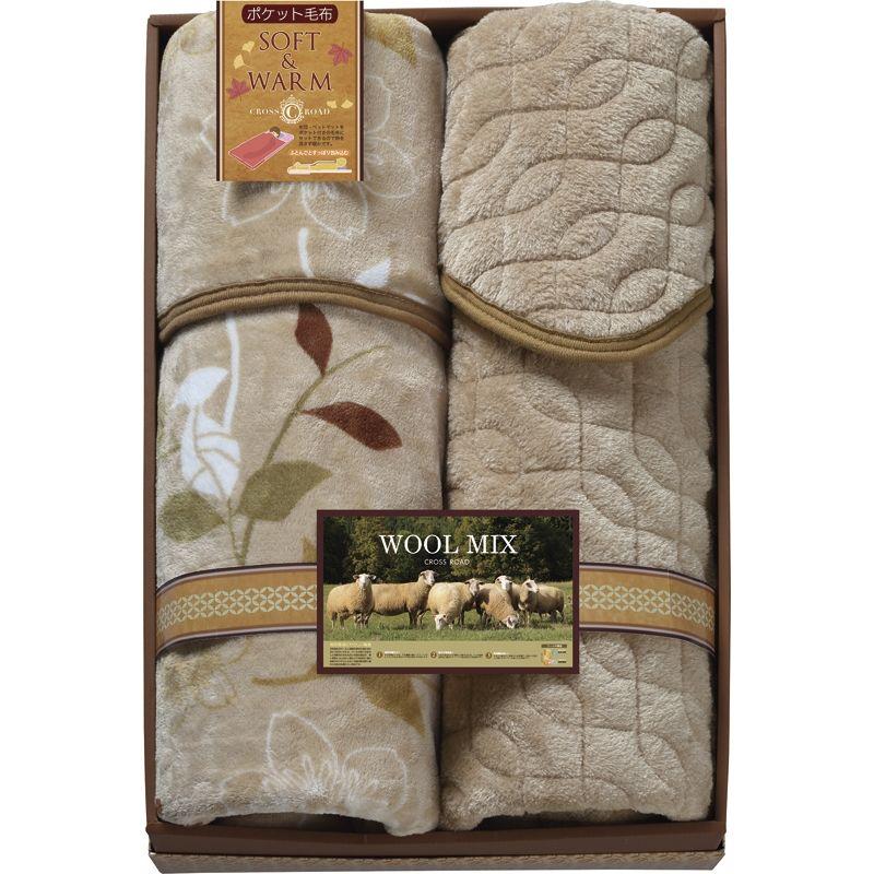 • クロスロード ウールミックス ウール混 敷パット&ポケット毛布 20606040