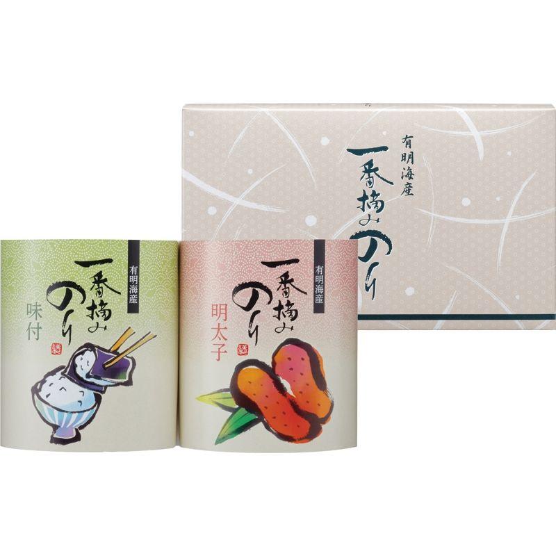栄養素が豊富な有明海の漁場で今年初めて摘み取られた貴重な海苔「一番摘み海苔」。味付、梅しそ、しお、明太子の4種類のフレーバーをセットしました。一番摘みならではの柔らかく風味豊かでパリッとした食感と口どけの良さが特徴的な美味しい海苔の詰合せです。