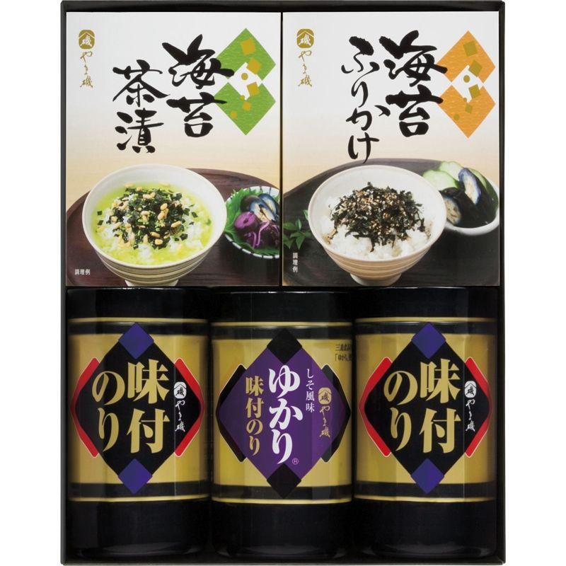 • 商品内容:味付のり(8切32枚)×2、ゆかり味付のり(8切32枚)・海苔茶漬(5.5g×3袋)・海苔ふりかけ(5g×3袋)×各1