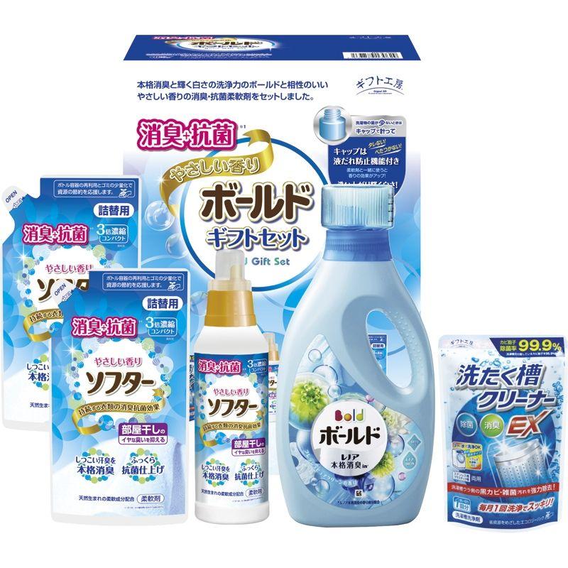 • 商品内容:消臭抗菌ソフター詰替用(350g)×2、P&Gボールドジェル(850g)・消臭抗菌ソフター(400g)・洗たく槽クリーナーEX(100g)×各1