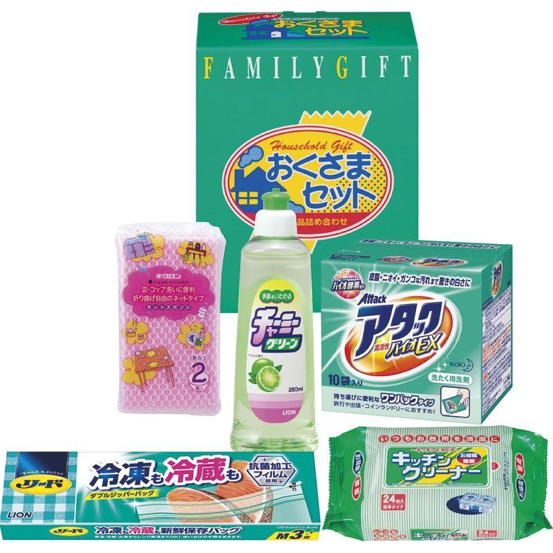 • 商品内容:花王ワンパックアタック(24g×10袋入)・ライオンチャーミーグリーン(260ml)・キッチン除菌クリーナー(24枚入)・リード冷凍も冷蔵も新鮮保存バッグ(タイ)(M3枚)・ネットスポンジ(中国)(2個入)×各1
