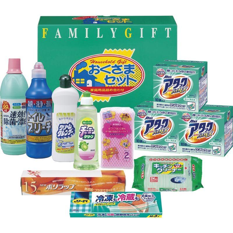 • 商品内容:花王ワンパックアタック(24g×10袋入)×3、ライオンチャーミーグリーン(260ml)・クリームクレンザー(ベトナム)(400g)・トイレブリーチ(500ml)・台所の速効!除菌・漂白(600ml)・ポリラップ(22cm×15m)・リード冷凍も冷蔵も新鮮保存バッグ(タイ)(M3枚)・キッチン除菌クリーナー(24枚入)・ネットスポンジ(中国)(2個入)×各1