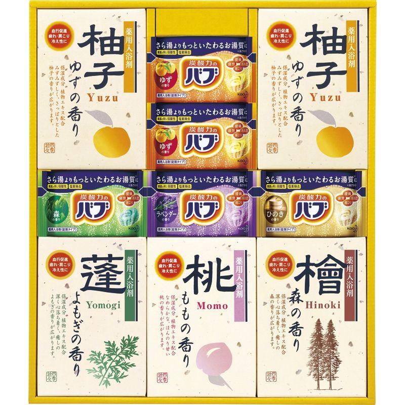 • 商品内容:バブ(ゆず)・薬用入浴剤(ゆず)(25g×2袋)×各2、バブ(森・ラベンダー・ひのき)・薬用入浴剤(よもぎ・もも・ひのき)(各25g×2袋)×各1